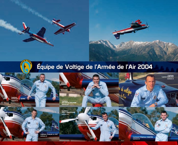 Entre autres réalisations (dépliants, cartes de vœux, autocollants, cartes postales, cartes de visites) pour l’Équipe de Voltige de l’Armée de l’Air, voici les couvertures des plaquettes dont l’intégralité de la réalisation m’a été confiée entre 1995 et 2004 :